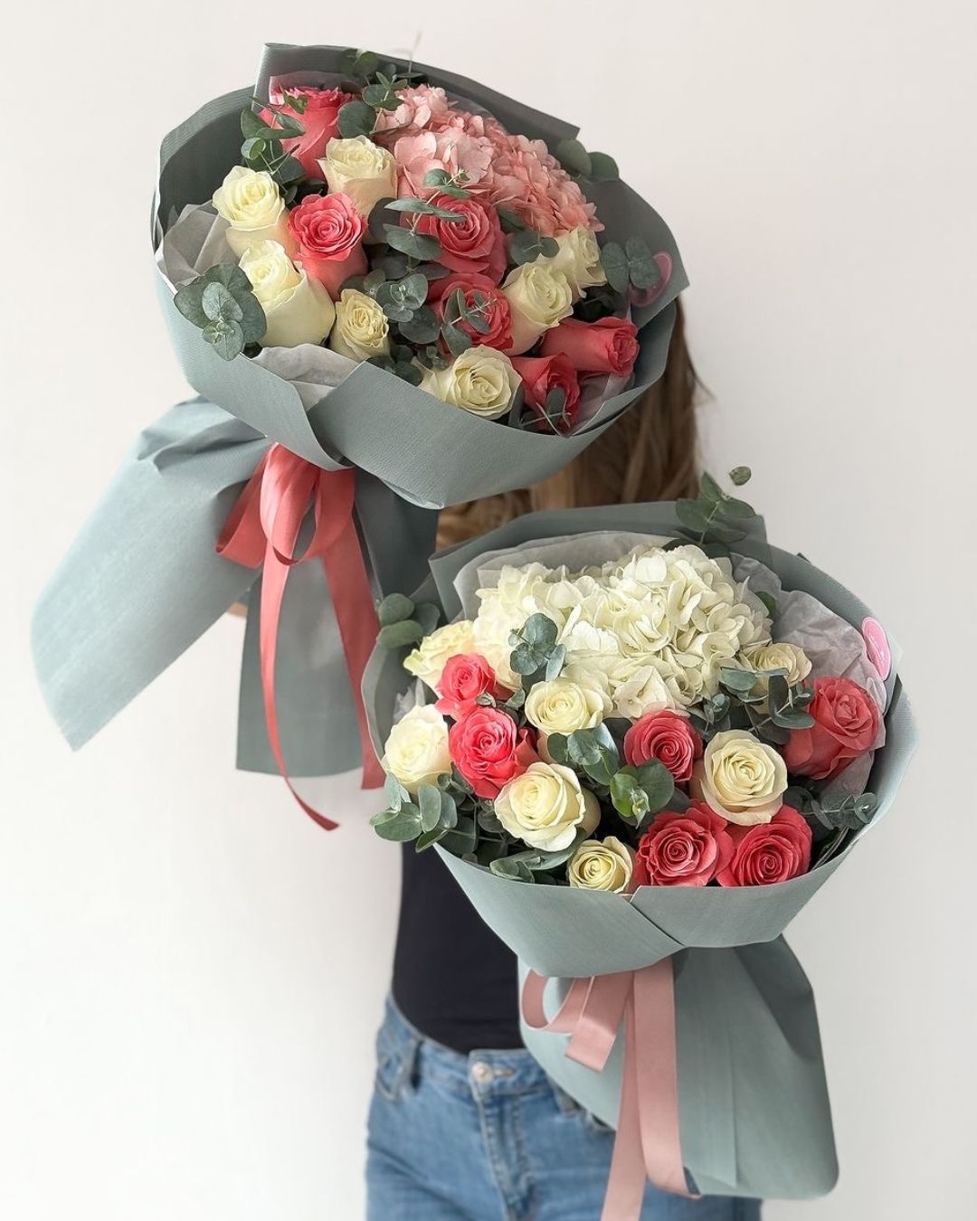 Букет из голландских роз и гортензий — это изысканное сочетание нежности и пышности. Голландские розы символизируют любовь и страсть, а гортензии — изящество и элегантность. Такой букет станет прекрасным подарком для любимых и украсит любой интерьер.