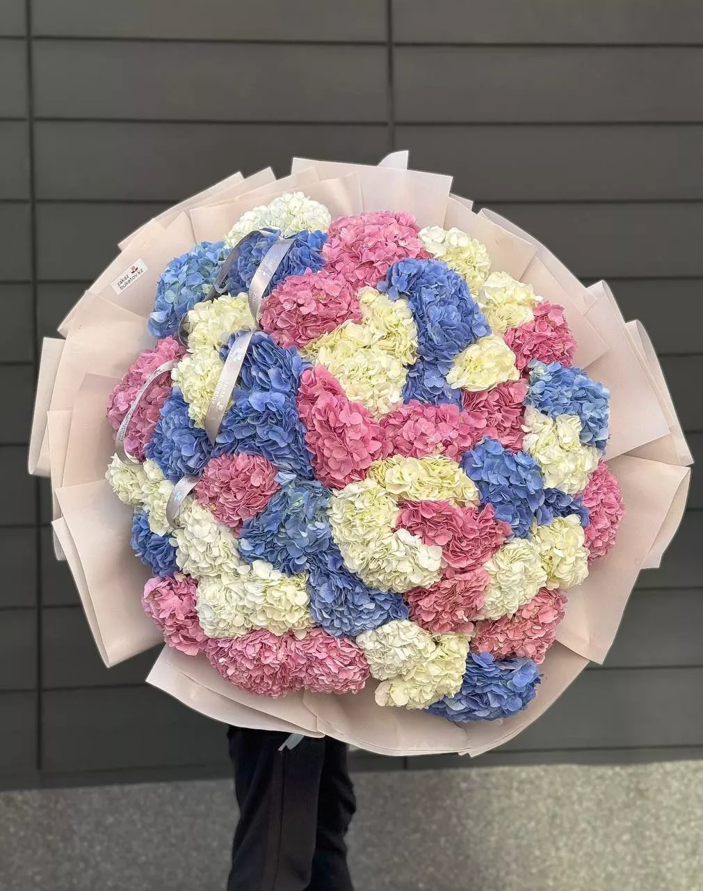 Роскошный букет из 51 гортензии — это потрясающее зрелище, состоящее из пышных и нежных соцветий, символизирующих любовь, радость и счастье.