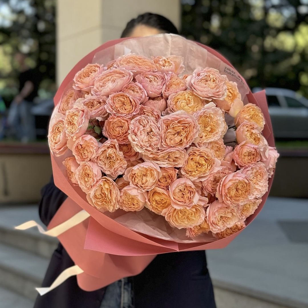 Букет из 15 пионовидных спрей роз – это чарующая композиция, наполненная нежностью и элегантностью. Каждая роза, словно маленький художественный шедевр, раскрывает свои лепестки в изысканных оттенках, призывая к романтике и прекрасному. Этот букет – идеальное воплощение элегантности и изыска, который призван олицетворять нежные чувства и радость момента.